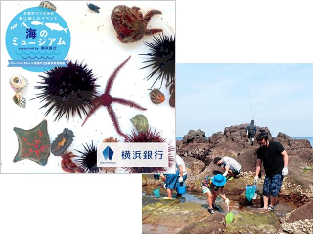 真鶴町・横浜国立大学・特定非営利活動法人ディスカバーブルーと生物多様性保全に関する連携協定を締結し、積極的に生物多様性保全に取り組んでいます。今年度は、真鶴町三ツ石海岸で海に親しむイベント「海のミュージアム」へ協賛することで、地域の皆様や行員に対し生物多様性保全について学ぶ機会を提要しています。