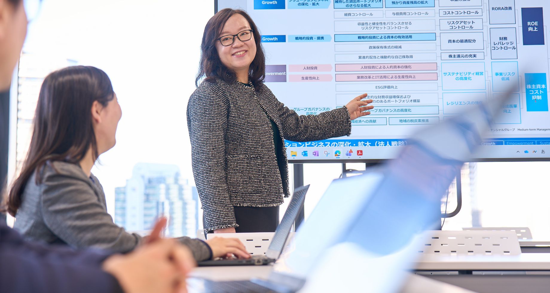 中国出身。5歳の時に横浜市へ移住。学部時代は語学の習得に注力し、大学院では中国経済を専攻。長期休暇には、アルバイトで貯めたお金で中国やアフリカ、欧米各国を巡り、見聞を拡げた。入行して最初の配属先は元町支店。窓口業務や債権管理などを担当し、4年目よりITソリューション部。
